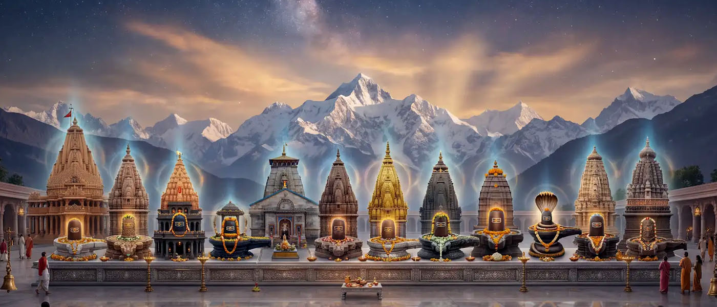 "Jyoti" means 'light' and "Linga" the 'sign' of Shiva. These twelve shrines are the most auspicious manifestations of Mahadev on Earth.